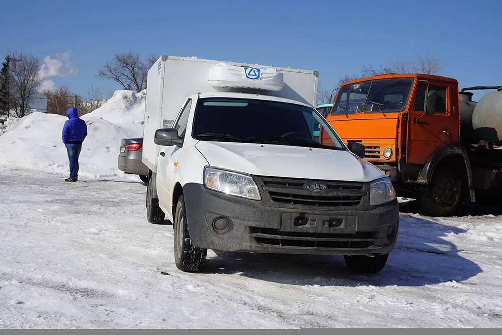 Рефрижератор ВИС 2349 ГРАНТА, г/п 850 кг. Машина с полу-рамной конструкцией, задняя подвеска рессорная (трёх листовые, с возможностью добавления листов), двигатель 1,6 - инжекторный, 8 клапанный. Предназначен для перевозки охлажденных и замороженных продуктов.