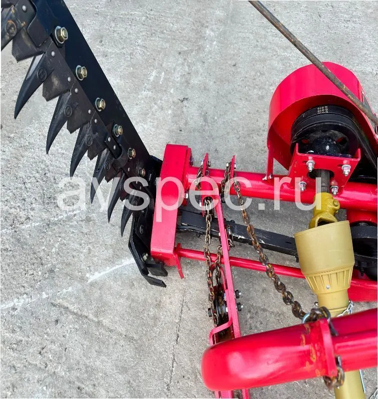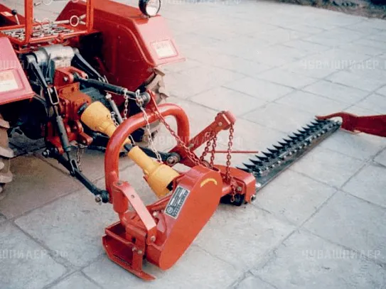 Косилка агрегатируется с колесными тракторами мощностью от 16 л.с., имеющими как задний, так и боковой вал отбора мощности. Стальные пальцы снабжены насеченными вкладышами. Режущий аппарат скользит по почве на наружном и внутреннем башмаках. Под башмаками расположены стальные полозки для установки режущего аппарата на требуемую высоту среза и для подъема его при работе на комковатой или каменистой почве. К наружному башмаку шарнирно прикреплена отводная доска, отгребающая срезанную траву в левую сторону. Режущий аппарат присоединен к раме косилки тяговой штангой, которая позволяет наклонять пальцевой брус в перед или назад. С помощью гидравлического цилиндра можно производить подъем или опускание режущего аппарата в момент необходимости, так же цилиндр удерживает режущий аппарат в рабочем положении. Режущий аппарат приводится в действие карданной передачей от ВОМа трактора при помощи шкива-эксцентрика и клиноременной передачи и вала с ведущим шкивом.