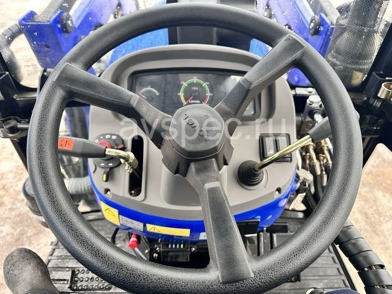 Кабина трактора оснащена кондиционером, системой отопления. Для удобства управления на минитраке установлен гидроусилитель руля, регулируемая колея и полный привод. Сидение комфортное, с ремнем безопасности надежно защищает водителя. Гидравлическое масло подается раздельно.